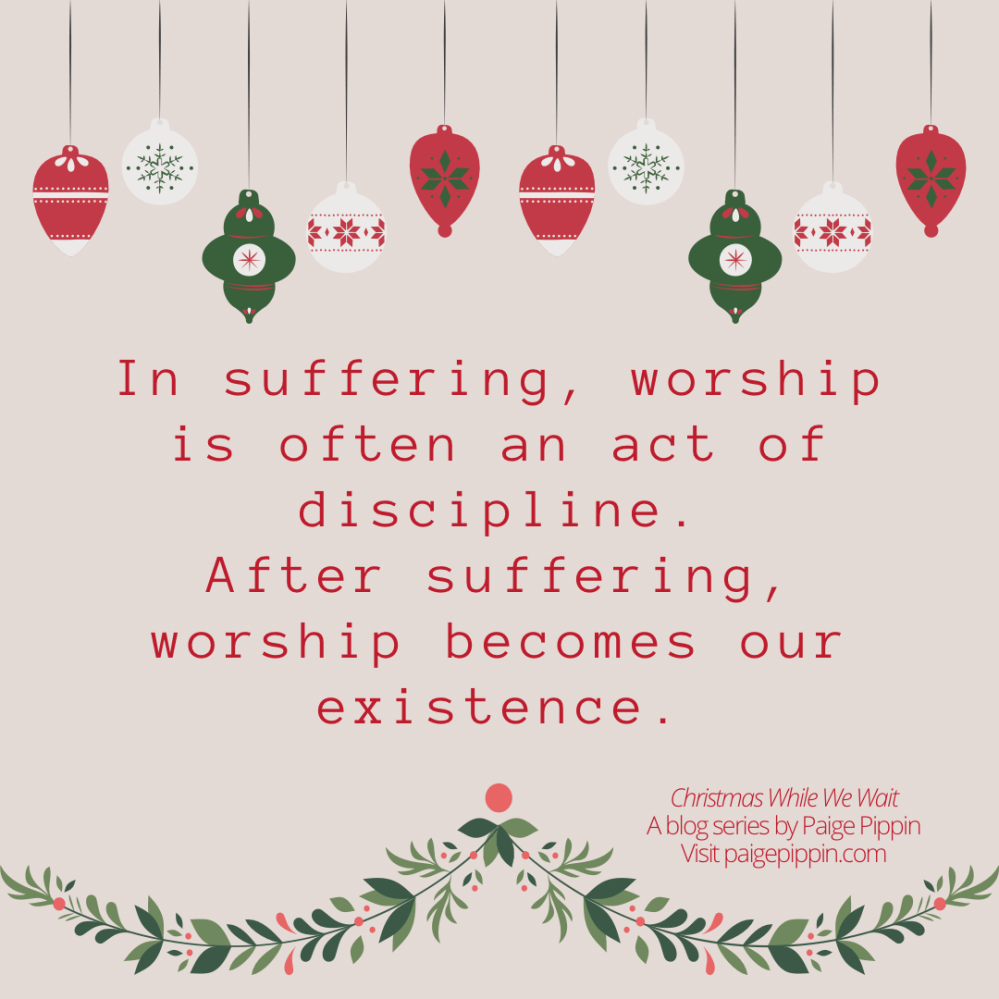 When tempted to turn inward, we must coach ourselves to remember who God is. We must get outside of ourselves by worshipping the One who is bigger than this pain and better than what we want. In suffering, worship is often an act of discipline. After suffering, worship becomes our existence.